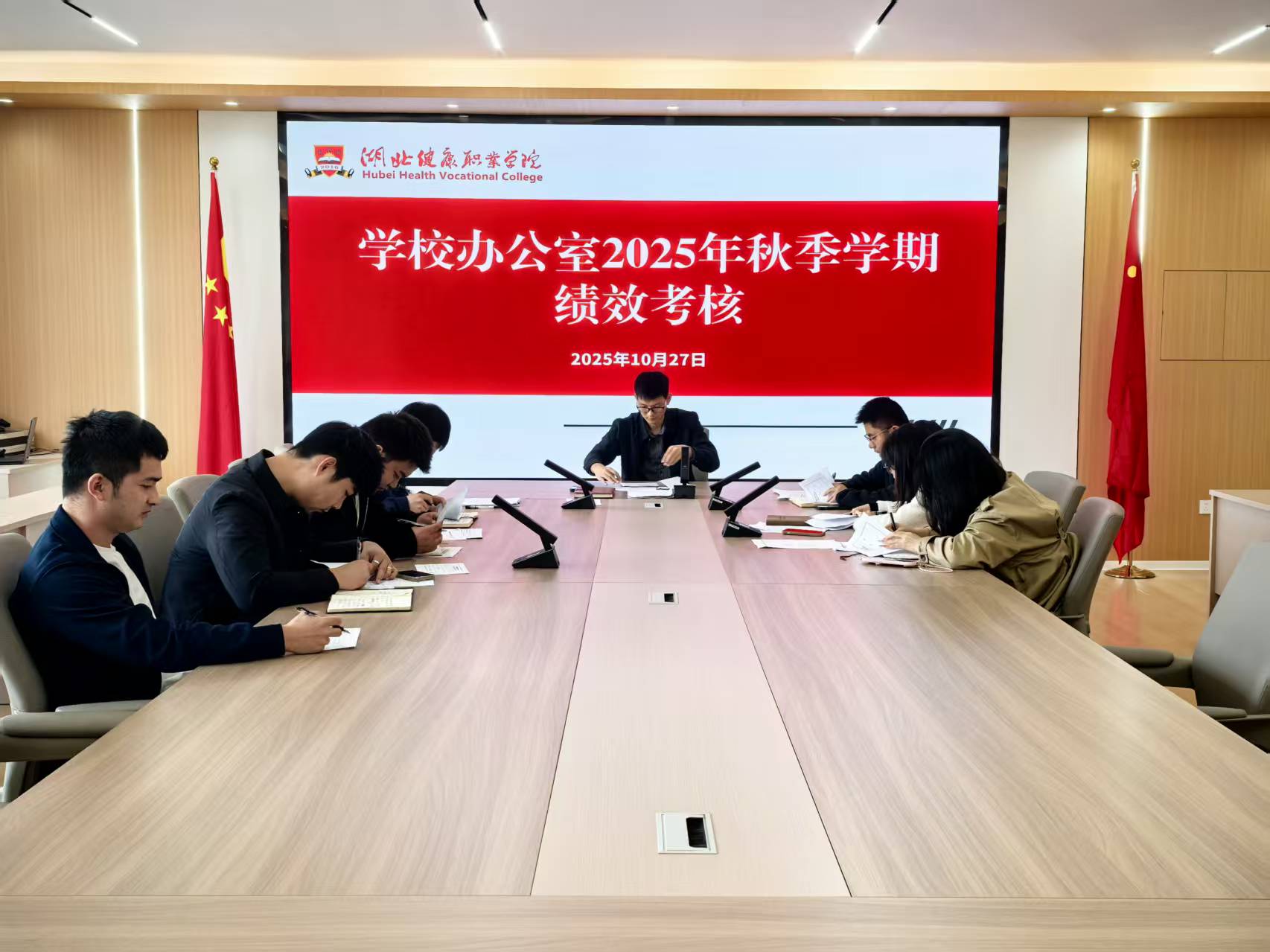 10月27日上午,学校办公室在学校会议室召开了2025年秋季学期第三次部门例会暨2025年春季学期绩效考核会议,学校办公室全体人员参加会议。会议由学校办公室主任李鹏主持。