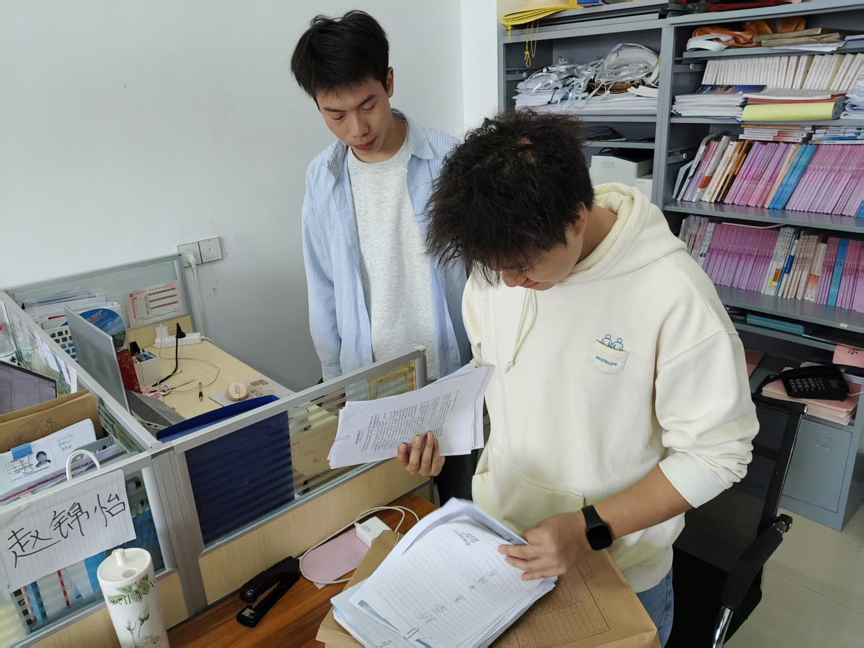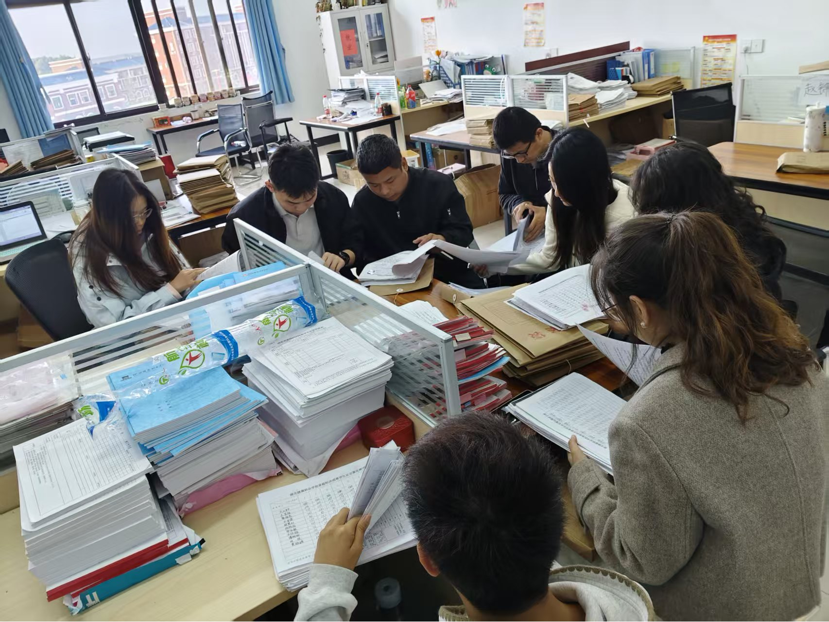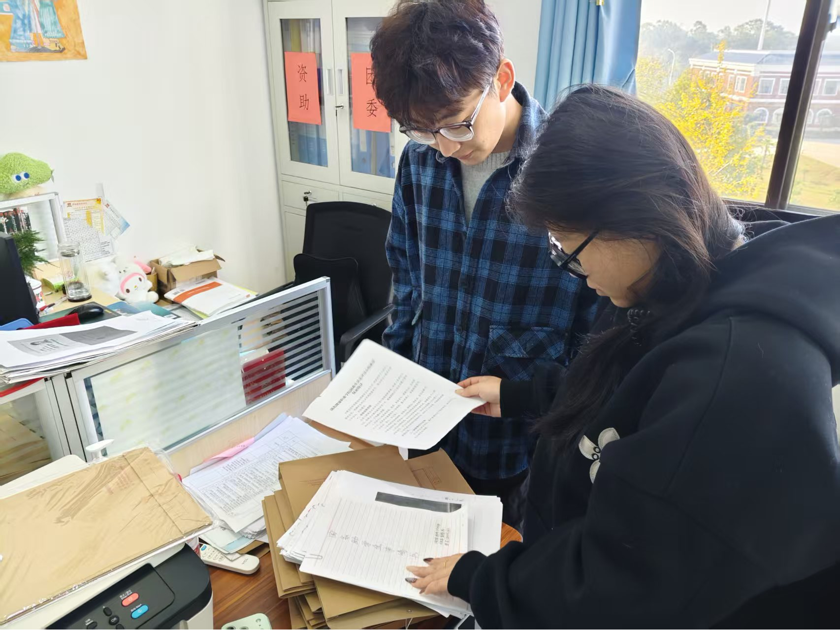 资助工作是关乎学生成长的民生工程,材料规范是政策落地的核心保障。互查工作启动前,系资助负责专员带领全体学工人员重资助材料检查标准,明确学生基础信息、家庭经济困难认定佐证、成绩证明、评审流程记录等核心核查要点,强调“逐份核验、痕迹可溯、问题清零”的工作要求。互查过程中,学工人员以严谨负责的态度,采取“交叉审核、分组研讨、集中复盘”的方式,对各类奖助学金申请材料进行全面“体检”,从材料完整性、信息准确性到流程合规性逐一把关,主动分享归档经验,共同破解共性难题,在查漏补缺中凝聚工作合力。
