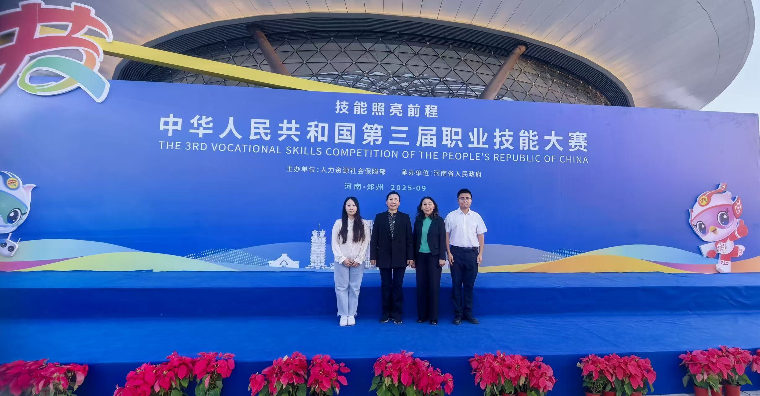 9月19日至23日,中华人民共和国第三届职业技能大赛在河南郑州举行。春来教育集团董事丁锋带领教学促进办公室主任贾喜玲、护理系教研室主任顾海迪、学校办公室秘书科科长丁朝民前往现场观摩学习。